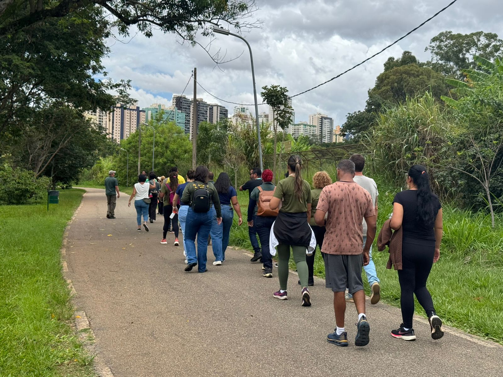 A visita começou na área administrativa do parque, seguida pela exploração do viveiro de mudas de plantas nativas do Cerrado, coordenado por um grupo de voluntários, que foram os guias da equipe. Em seguida, os servidores se dirigiram à área de gestão de resíduos da Unidade.