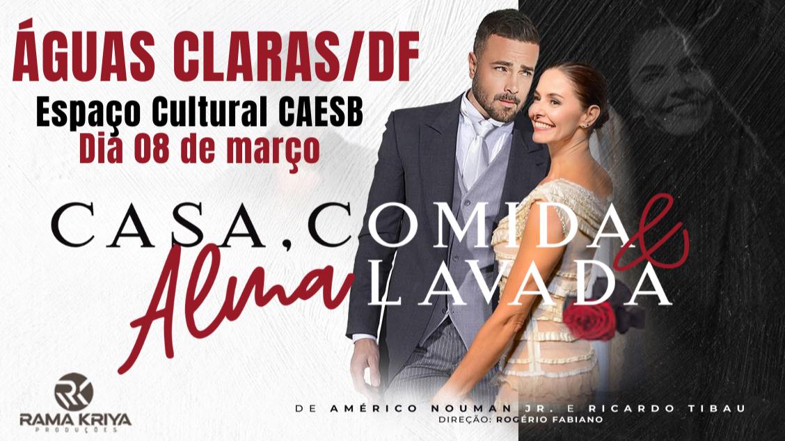 A comédia “Casa, Comida e Alma Lavada”, escrita por Américo Nouman Jr. e Ricardo Tibau, está de volta ao Brasil com sua turnê em março. Com uma trajetória marcada por sucesso em diversas cidades, a peça, que é estrelada por Bianca Rinaldi no papel de Tânia Mara e Rodrigo Phavanello como Luís Alberto, fará uma única apresentação em Brasília no dia 8 de março, no Teatro Caesb Águas Claras.